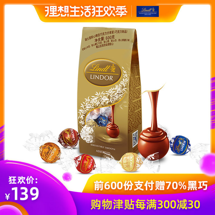 18Lindt瑞士莲进口软心精选巧克力分享装 600克
