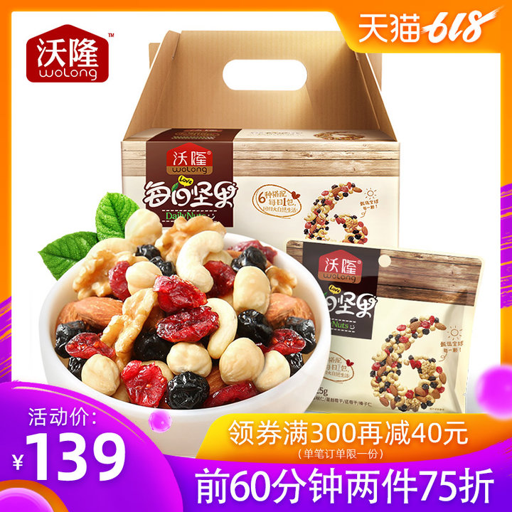 沃隆的这款是6种坚果搭配果干的哦,科学定量,人工无菌称重封装,补充一天营养活力,0添加,0调味,保留每种坚果的本真原味~只为体验唇齿之间相逢的美味,每天25g休闲零食也是你的营养担当,独立小包装,随身携带的小时尚。