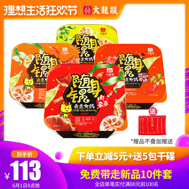3大龙燚随身锅自热小火锅懒人自热方便速食网红麻辣火锅荤素四盒装